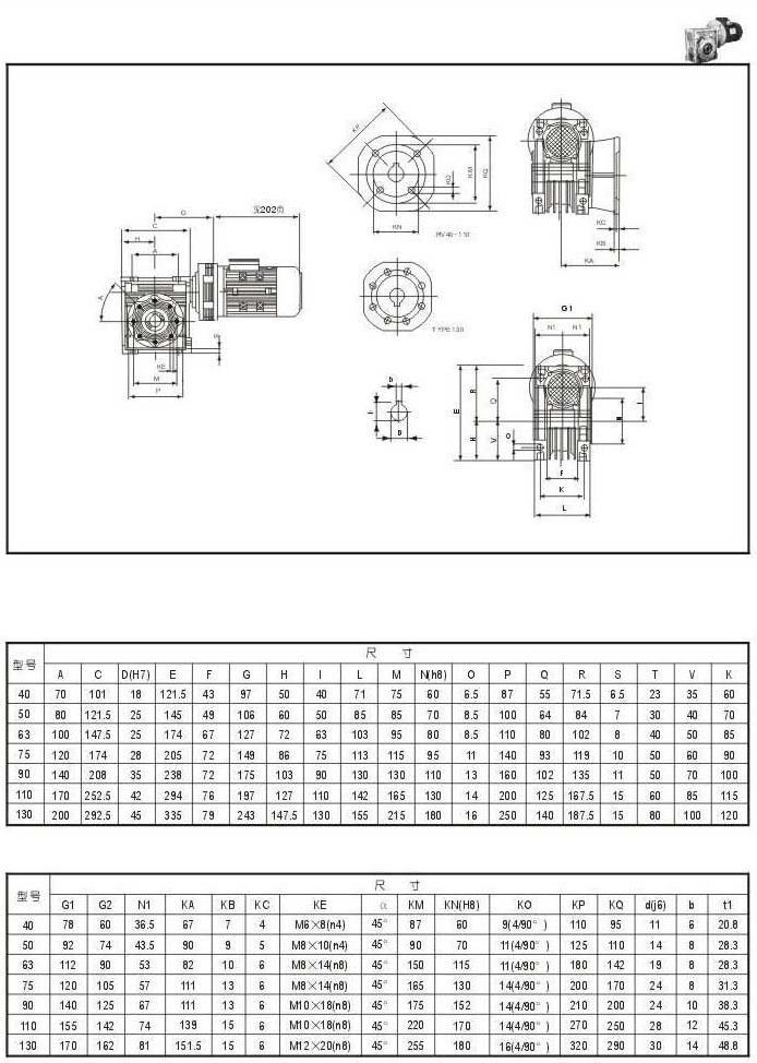 蝸輪減速機與擺線減速機組合型技術參數(shù)表(輸出扭矩N.M)三